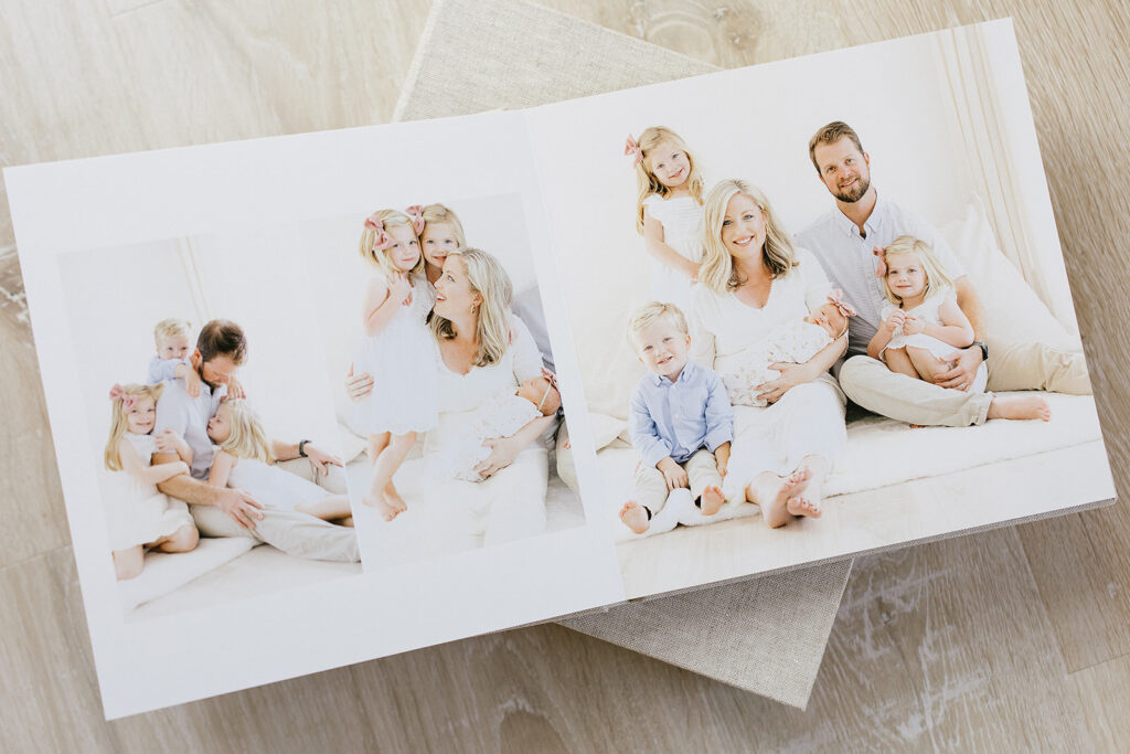 A custom-designed album allows families to revisit an entire season of life, turning pages, reliving moments, and sharing them with future generations.